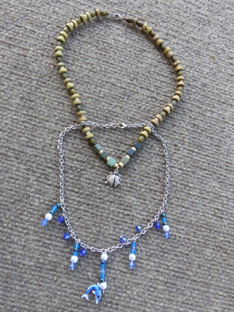 Hello everyone! This month’s craft project is a beautiful necklace that was made of used materials. In addition to that, I also want to show you some other jewelry projects that Kai and I have created over the years.