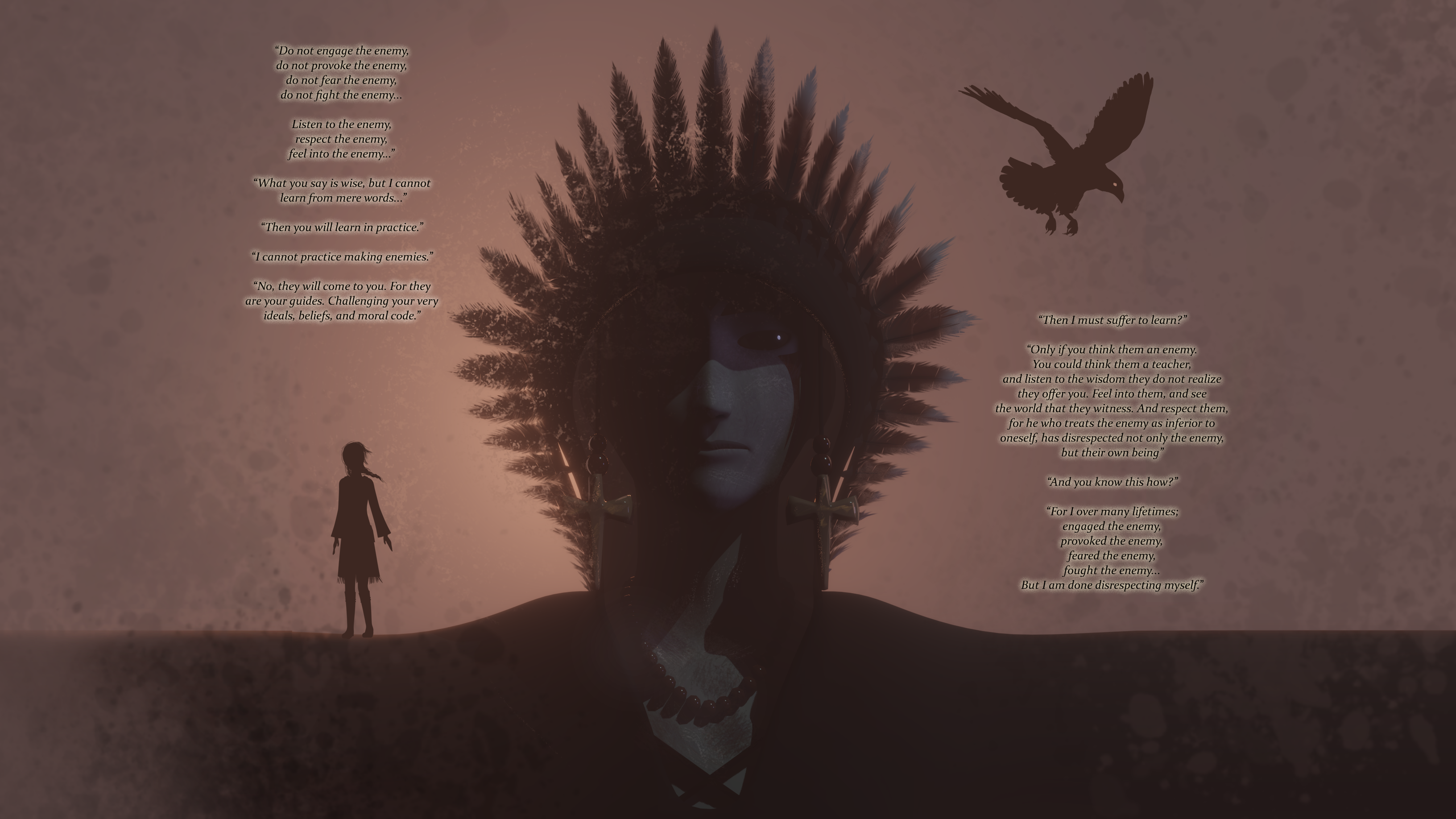 Wisdom Within The Enemy August 28, 2018 3264 × 1836 Wisdom Within The Enemy This piece came from experimenting with colors and light with a shaman character I previously created. The short story took the longest to make.